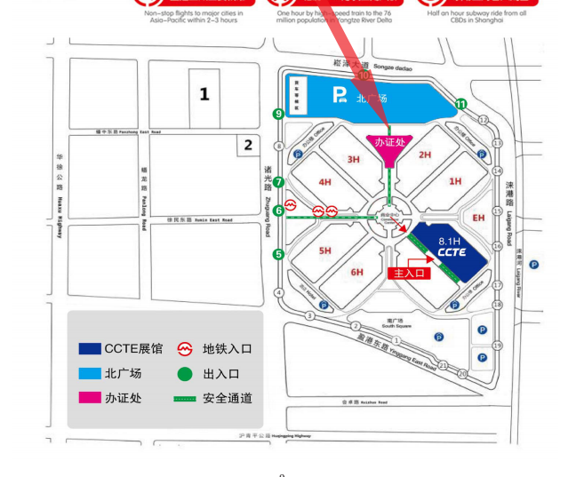 4、上海體育館:111路公交終點(diǎn)站上下客點(diǎn),直達(dá)上海體育館公交樞紐,連接1、3、4號(hào)線。國(guó)家會(huì)展中心內(nèi)部接駁巴士上下客點(diǎn)設(shè)在北廳外指定區(qū)域。