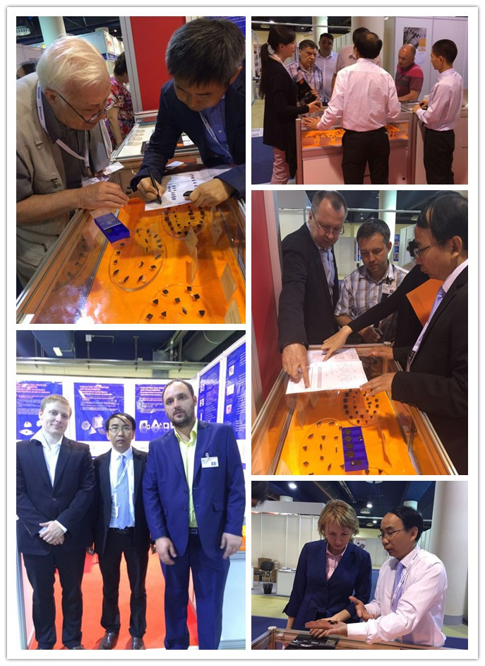2015俄羅斯國際機(jī)床展博特超硬刀具盡展風(fēng)采-鄭州博特硬質(zhì)材料有限公司-2015俄羅斯國際機(jī)床展于5月25日8:00(北京時間5月25日13:00)在莫斯科盛大開幕。來自世界各地的機(jī)床制造、金屬加工工具等眾多企業(yè)匯聚在此,展開了一場以“交流發(fā)展合作共贏”為宗旨的高端國際化先進(jìn)制造交流會?! ”敬握箷┨毓菊钩隽硕嗫罹哂懈呒夹g(shù)含量與競爭優(yōu)勢的高精密可轉(zhuǎn)位數(shù)控刀片,主要有四大類:PCBN整體燒結(jié)、PCBN整體焊接、PCBN復(fù)合焊接、PCBN整體復(fù)合,展品小而精悍,備受參