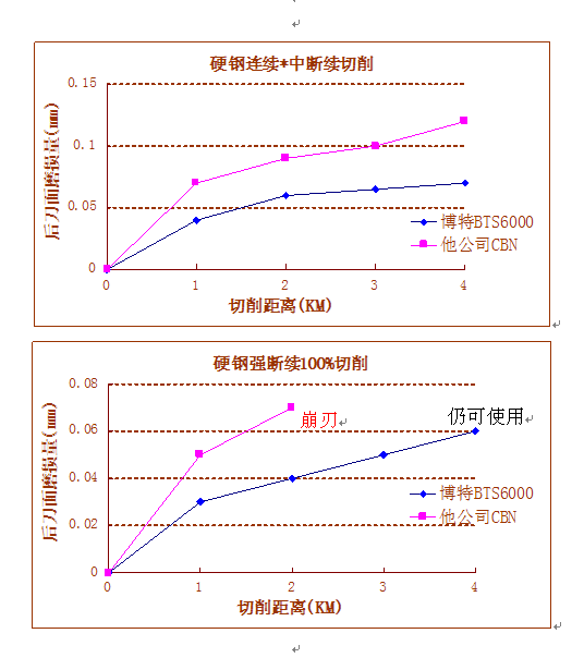 博特超硬刀具加工鑄鐵、硬鋼性能試驗對比